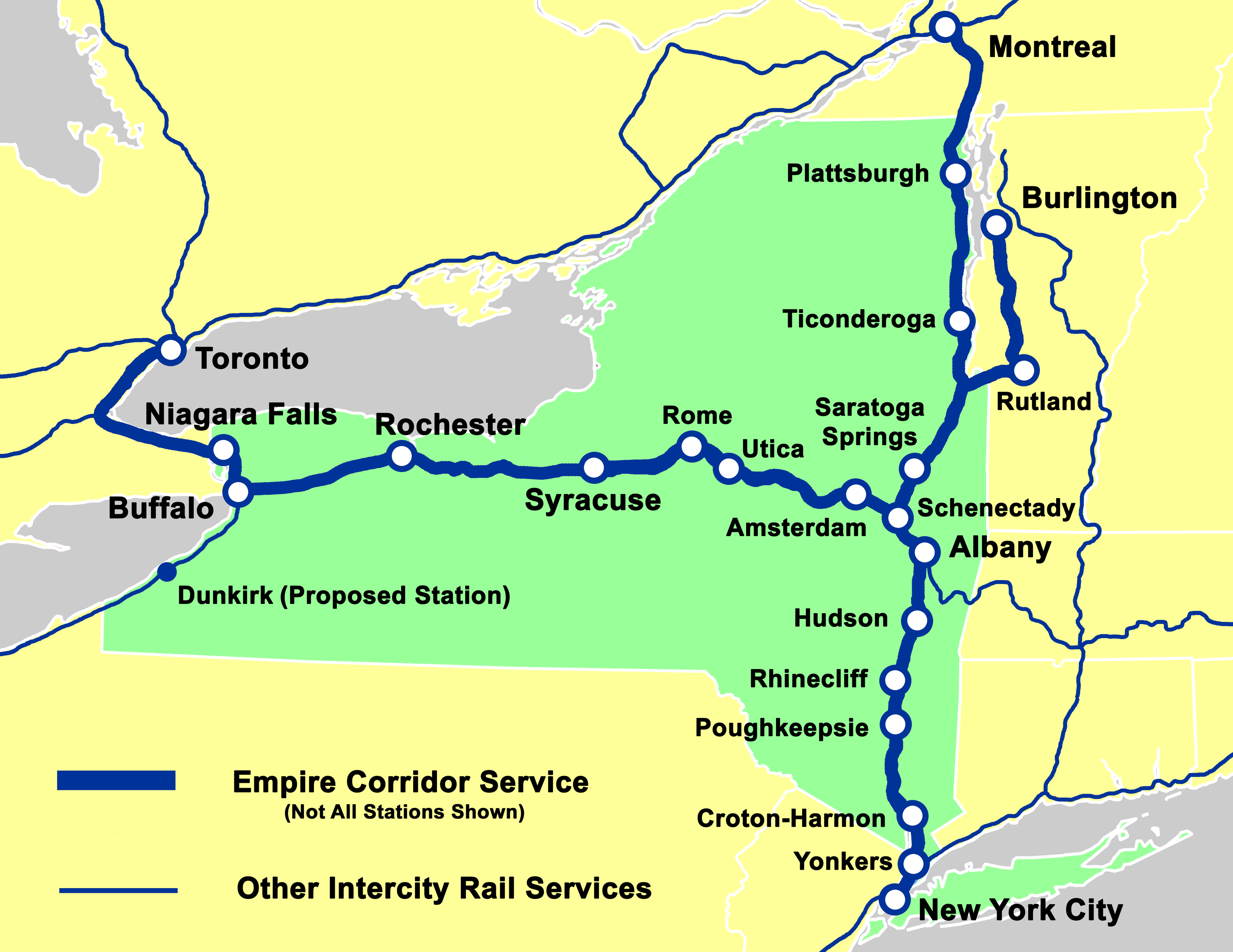 - Learn about how today's Amtrak "Empire Corridor" service came about, with in 1967 the New York Central Railroad pioneering the first modern intercity passenger rail corridor service, the New York City to Buffalo "Empire Service"