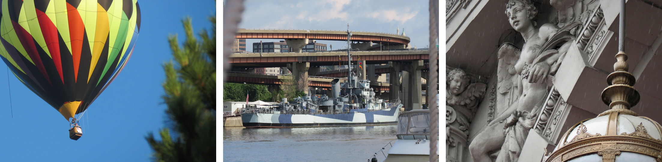 LEFT: Hot Air Ballon in Saratoga County CENTER: USS Slater in Albany RIGHT: Ellicott Square Building in Downtown Buffalo