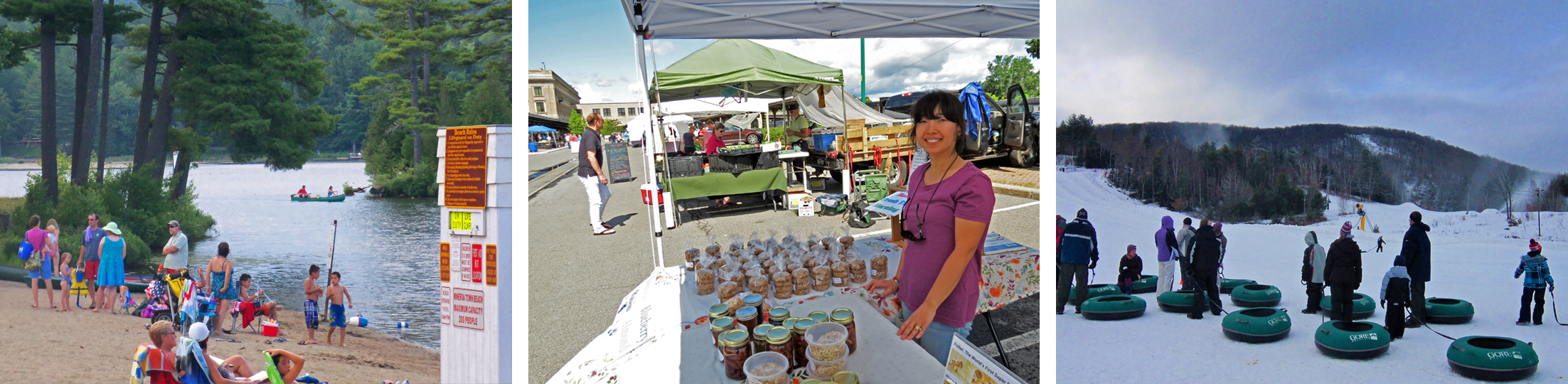 LEFT: Minerva Lake in the Adirondacks CENTER: Farmers Market in Utica RIGHT: Gore Mountain Ski Center in North Creek