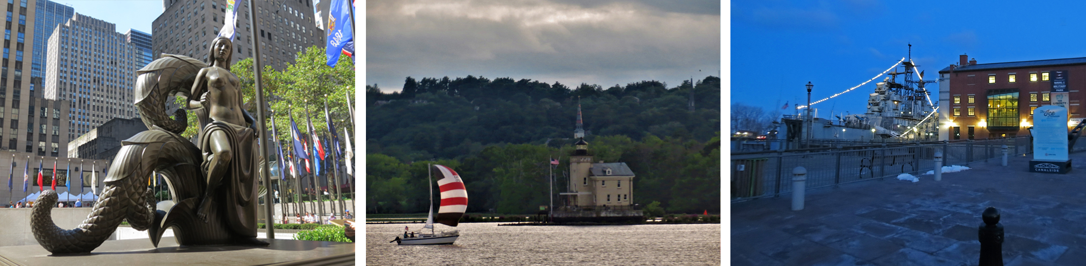 LEFT: Rockefeller Center in New York City CENTER: Rondout Lighthouse in the Hudson Valley RIGHT: Canalside in Buffalo
