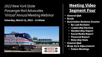 Jane Brophy, Amtrak's Senior Manager - Government Affairs for the Northeast and Luke Irvine, Amtrak's Empire Corridor Road Foreman based at Niagara Falls, NY, provided informative presentations.