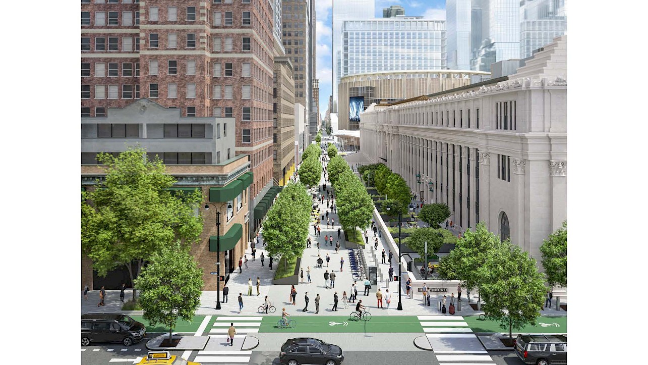 The funds are expected to pay for 18 new escalators and 11 elevators to train platforms at the station, and will increase the number of street entrances at the station to 20 from 12. It will also fund a 30,000-square-foot public plaza, and include a new underground connection to the B, D, F, M, N, R, Q and W trains at 34th St.-Herald Square.