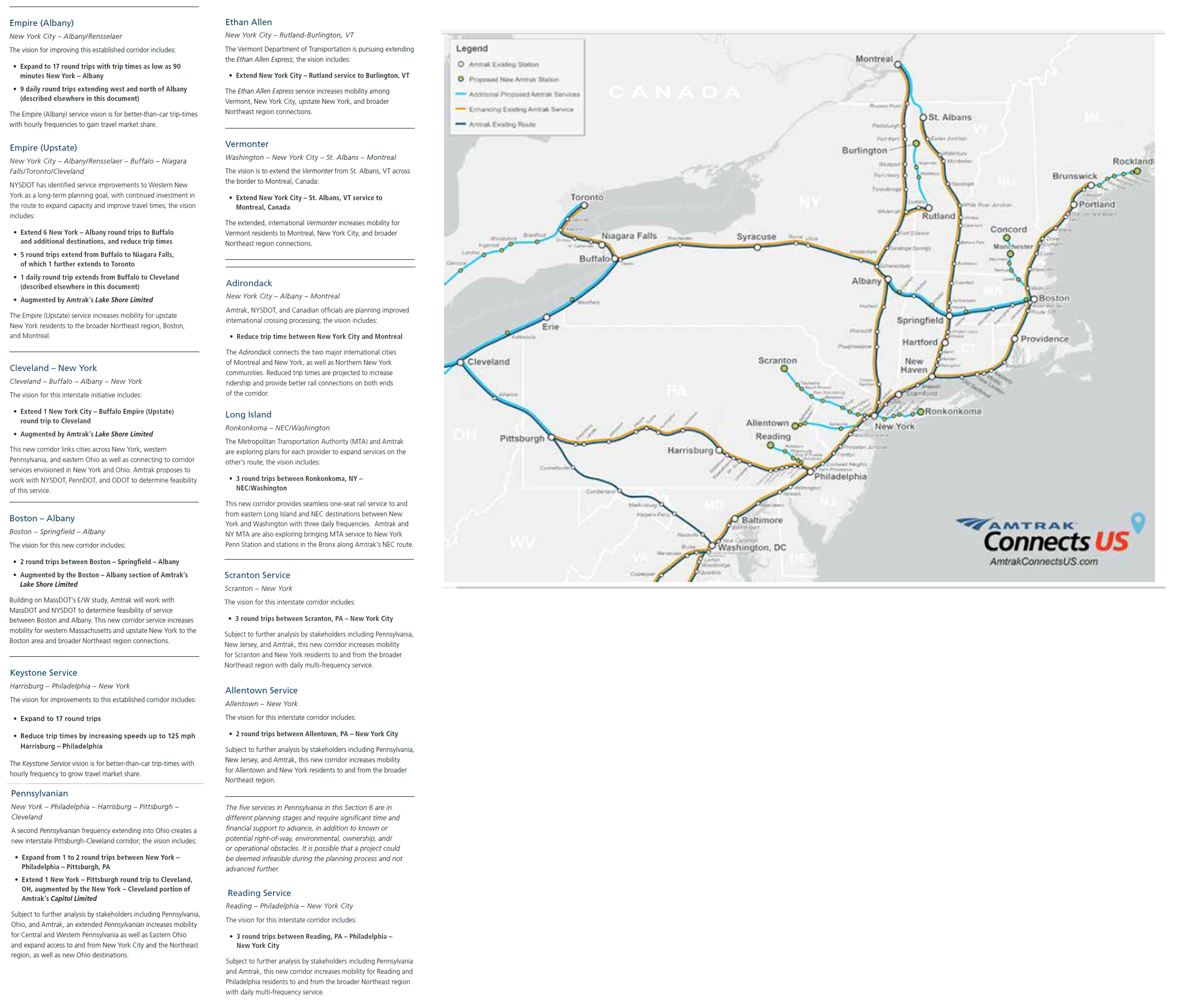 For the Empire Corridor the national passenger railroad increasing frequency and reducing travel times, including an additional NYC-Albany, NYC-Niagara Falls, and NYC-Cleveland roundtrip frequencies to the existing timetable. Amtrak is also proposing extending Northeast Regional service to Ronkonkoma over the LIRR with three roundtrips per day. And “East-West Rail” also got included in the report, with the railroad proposing two additional Boston-Springfield-Albany roundtrips supplementing the current Lake Shore Limited.