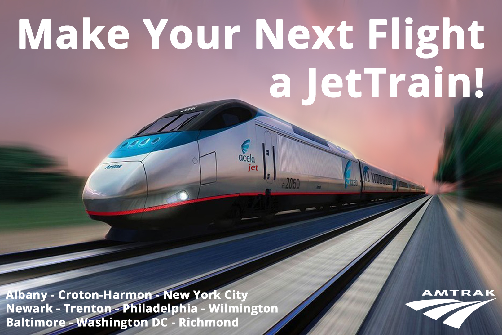 In 1998, NYS DOT signed an agreement to buy seven JetTrain trainsets from Bombardier for service between Albany, New York City, and Washington DC under the ‘Acela Express’ brand of Amtrak’s Boston-Washington high-speed rail service.