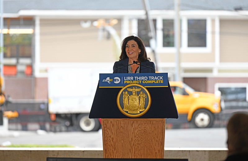 Governor Kathy Hochul celebrated October 3rd the completion of the Long Island Rail Road's historic Third Track project on time and under budget. The new 9.8-mile track runs from Floral Park to Hicksville, giving the railroad more operational flexibility to minimize service disruptions and increase service by 41 percent systemwide when Grand Central Madison opens later this year, while improving safety and creating true bi-directional LIRR service to fuel the local economy.