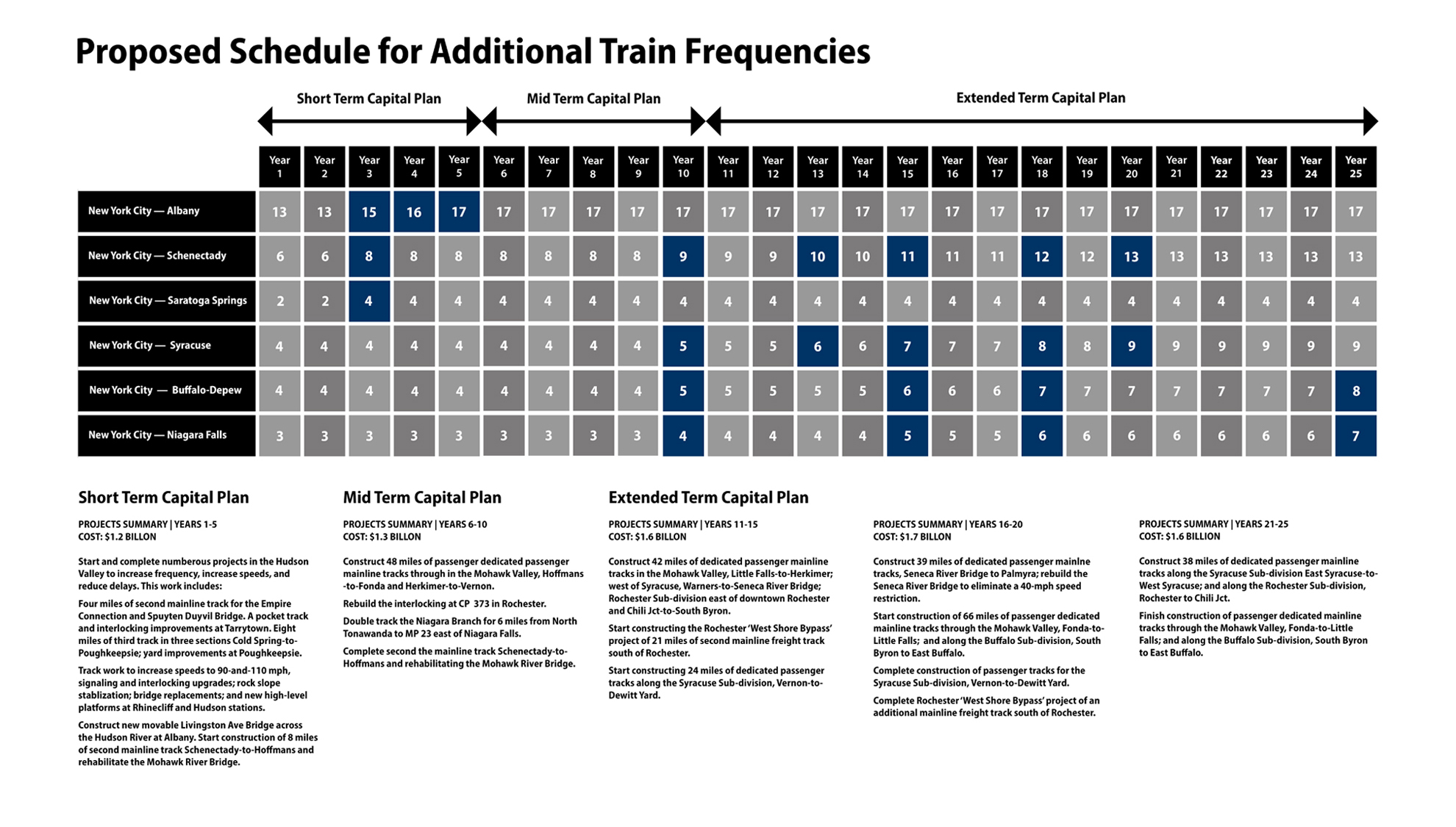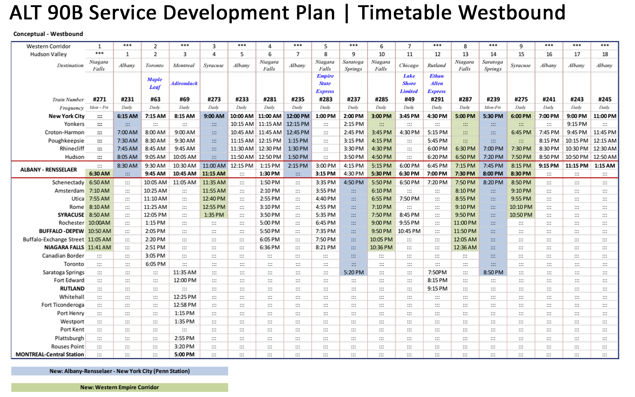 ABOVE: An infographic showing the planned implementation of ALT 90B under the Service Development Plan, including the addition of additional train frequencies. NYSDOT is working on an update of the Service Development Plan, that will hopefully speed up implementation.