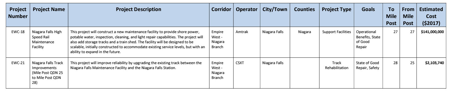 The primary focus of the Tier I EIS is on improving intercity passenger rail service west of Albany to Niagara Falls, as this section of the Empire Corridor has Amtrak service of a far lower intensity compared to the already relatively high-intensity service (for North America) down the Hudson Valley, from Rensselaer to Penn Station.
