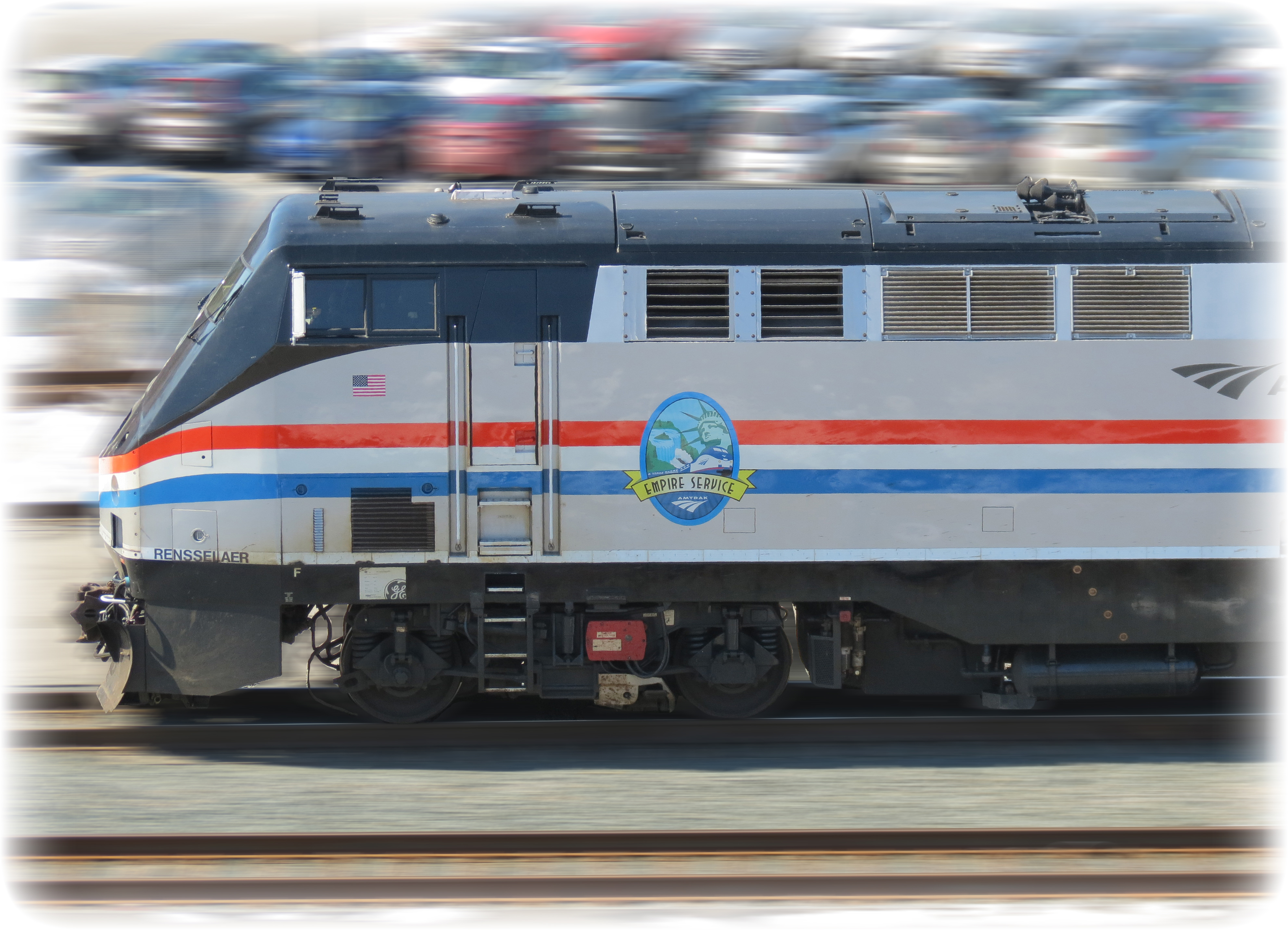 ABOVE: Traveling at around 100 MPH, the westbound Ethan Allen crosses Fuller Road in Albany NY.