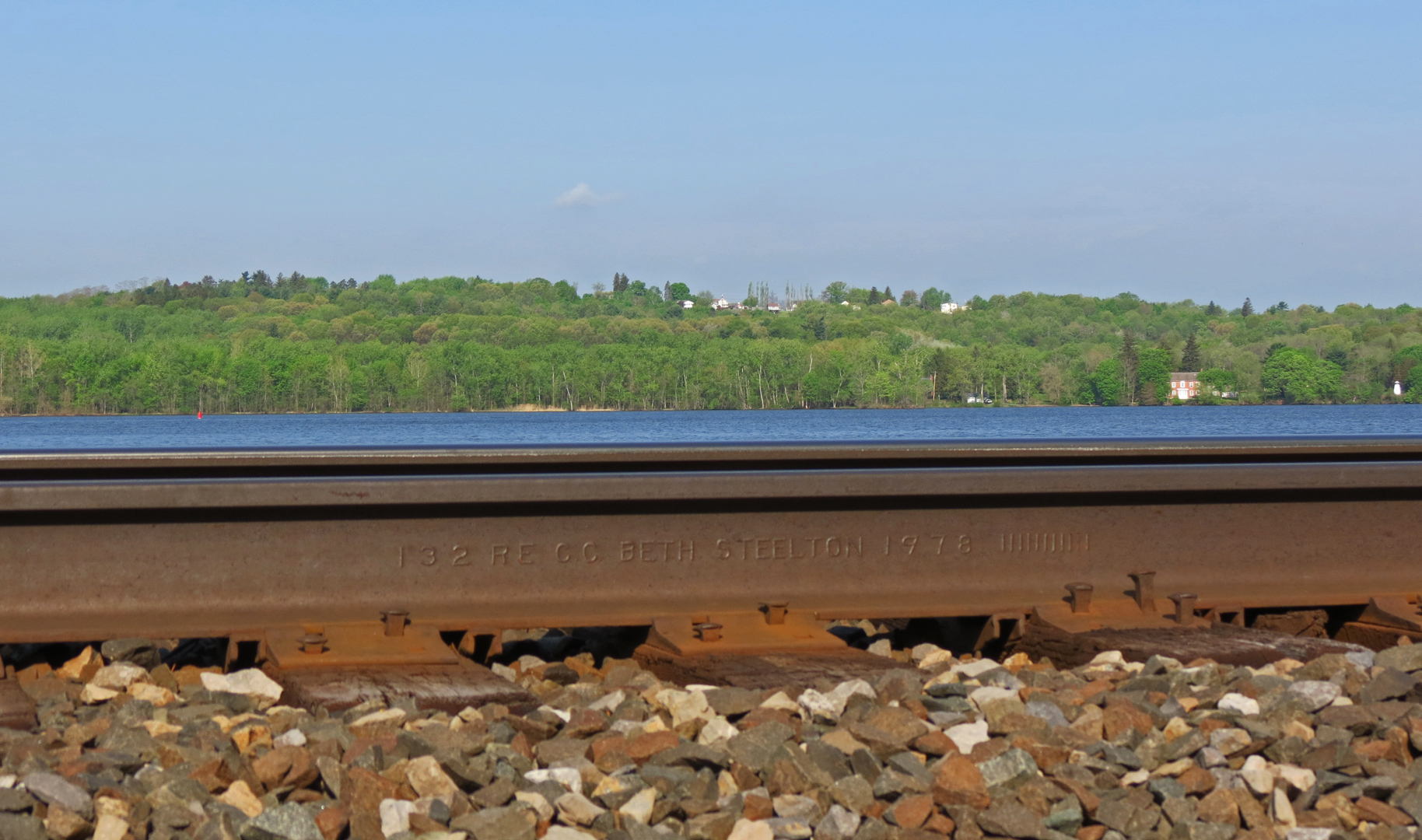 ABOVE: The heavy steel rails of the Hudson Line alongside the Hudson River south of Albany, where 110 MPH speeds would be extented south to Poughkeepsie under the Service Development Plan of ALT 90B.