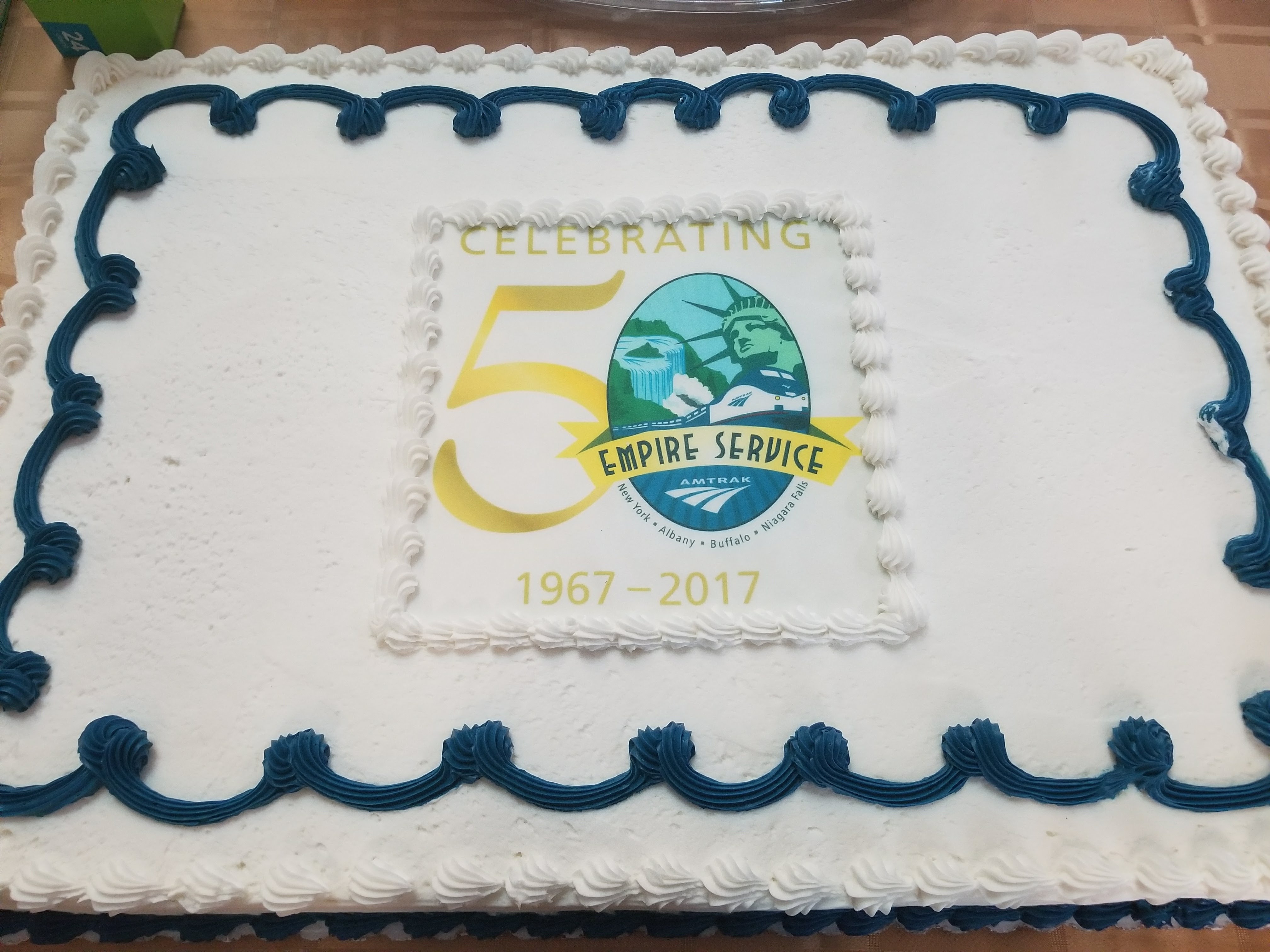 The Empire Service 50th Anniversary cake served at the special cermony held at the Albany-Rensselaer Rail Station in Dec 4th, 2017.