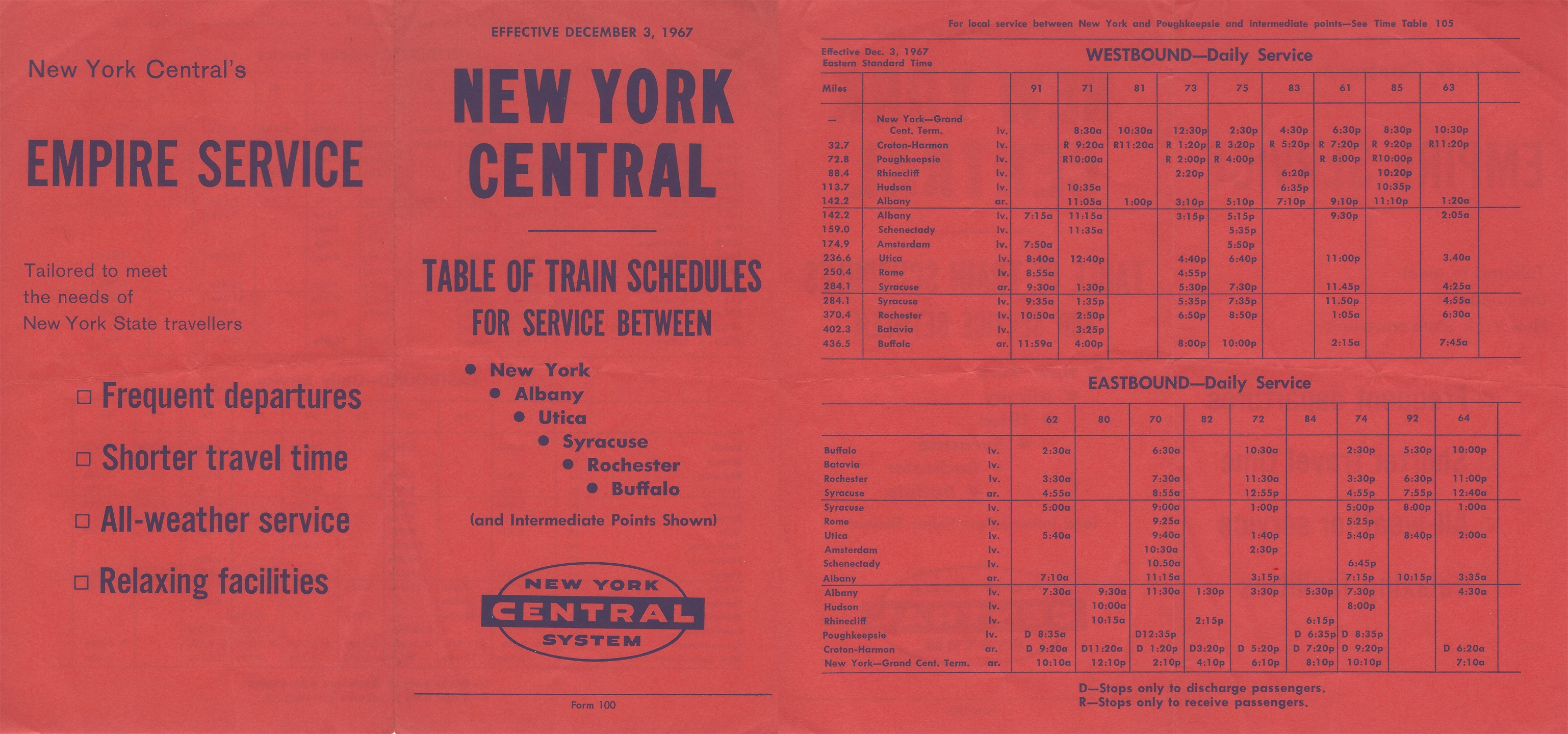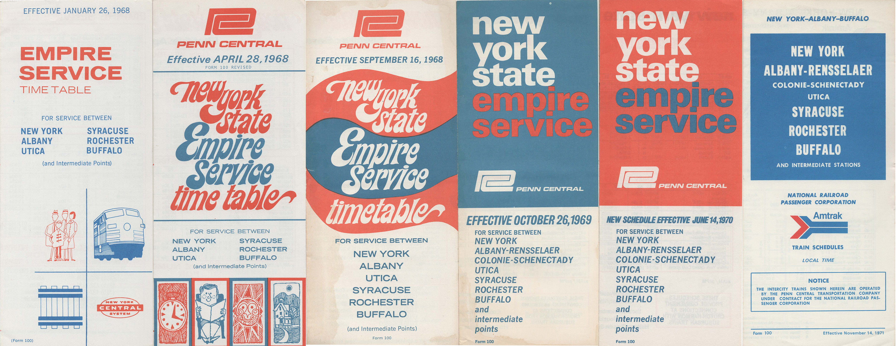 Empire Service timetables from the New York Central through Penn Central to Amtrak.