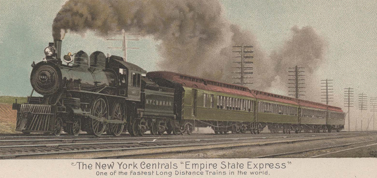 Serving many of the most populated and industrialized states in the country between New York City, Boston, Buffalo, Chicago, and St. Louis, the New York Central ran extensive passenger serives including luxury high-speed express strains like the Empire State Express and 2oth Century Limited. With famous Engine 999 at its head the Empire State Express set a speed record in 1893.