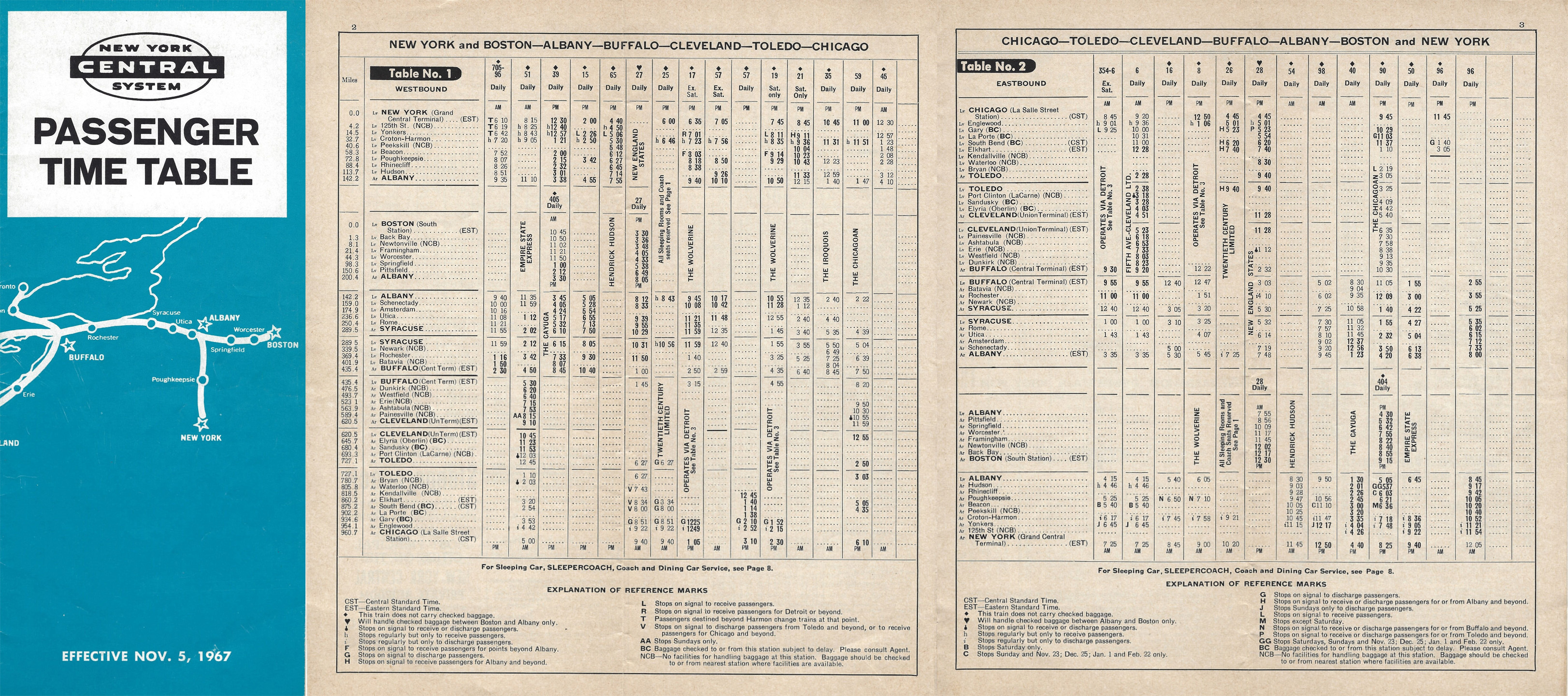 ABOVE: New York Central passenger timetable issued in November 1967 and BELOW the new December 1967 "Empire Service" timetable.
