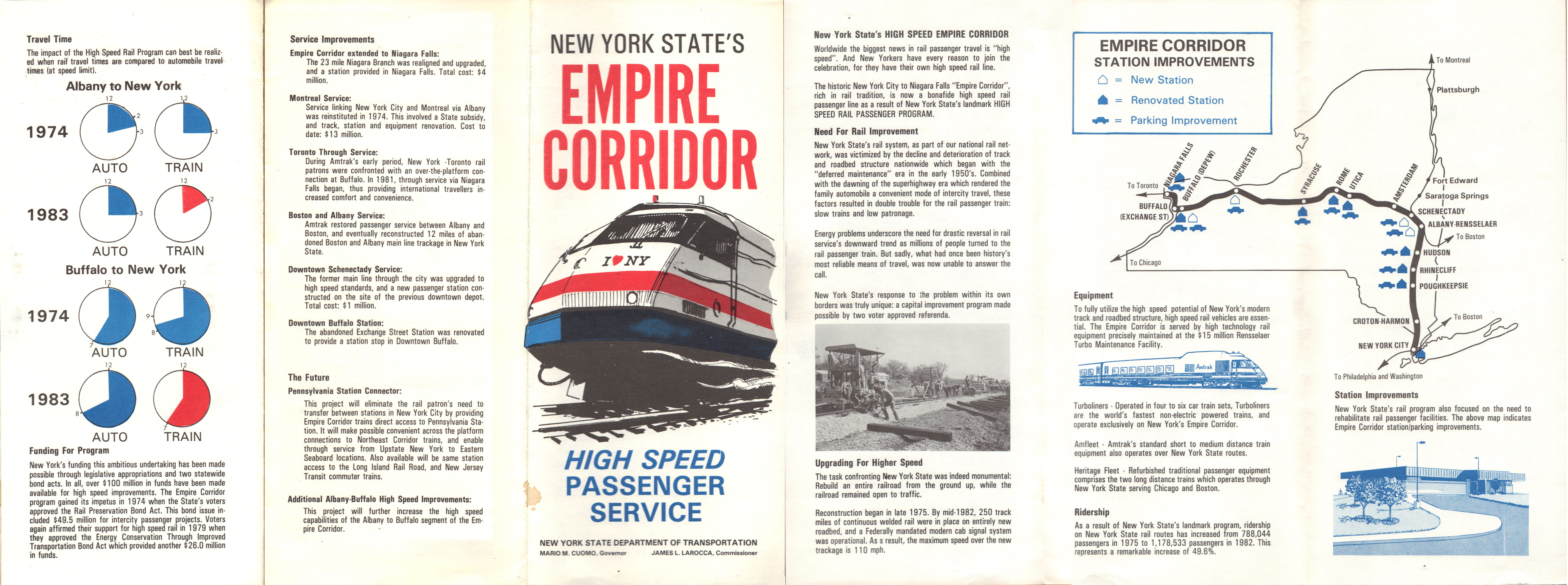 A 1980s brochure from the New York State Department of Transportation on their sucessful Empire Corridor High Speed Rail Program, that was funded by the state goverment and completed in partnership with Amtrak.